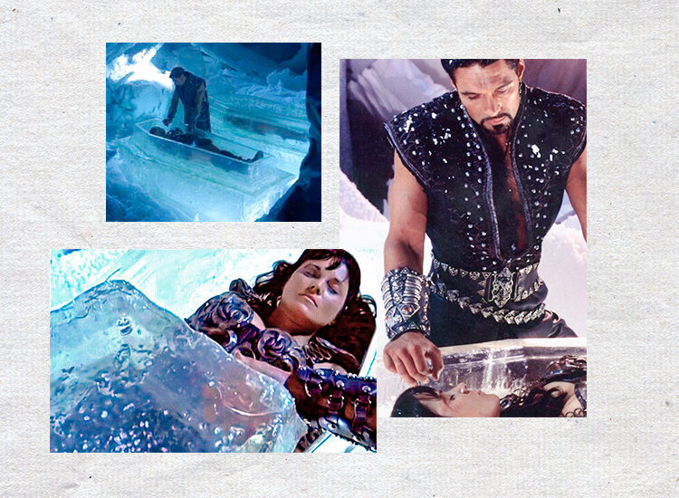 Воин и сказительница решают обмануть богов имитируя свою смерть. Они выпили слезы Селесты (Смерти), чтобы Олимпийцы убедились в их гибели. Ева была спасена и увезена Августом в Рим, а вот Зена и Габриэль не вернулись к жизни. По крайней мере не сразу. Арес похоронил их в пещере в ледяных гробах, где они проспали без малого 25 лет.