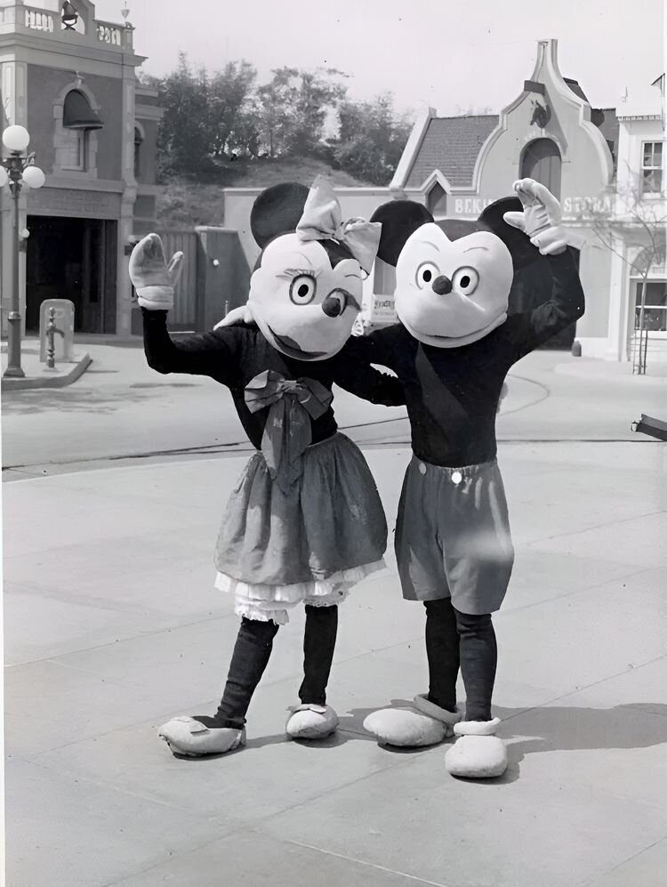 И снова настораживающие костюмы Микки и Минни Маусов. Если вы считаете эти костюмы жуткими, то вы ещё не видели другой вариант костюмов, существовавших в тот же период