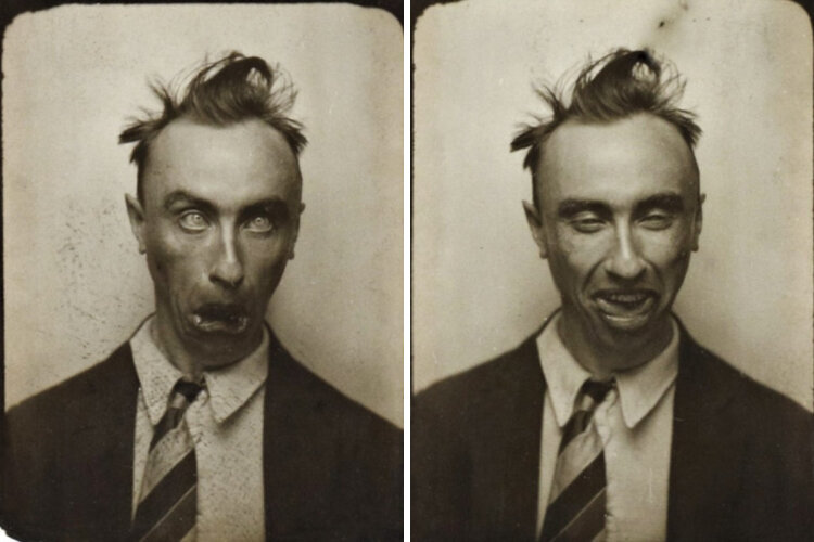 Селфи французского художника-сюрреалиста Ива Танги, сделанное в фотобудке, примерно 1928 год