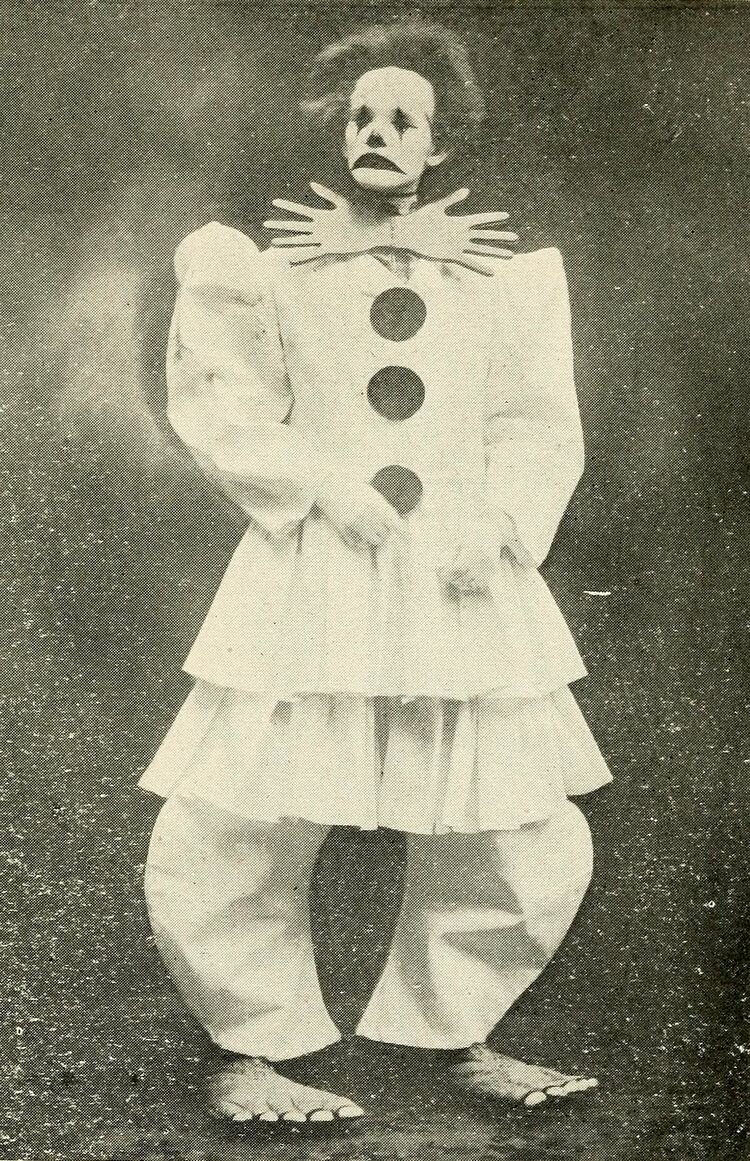 Клоун из 1914 года с бабочкой в виде рук, которая выглядит так, словно могла задушить