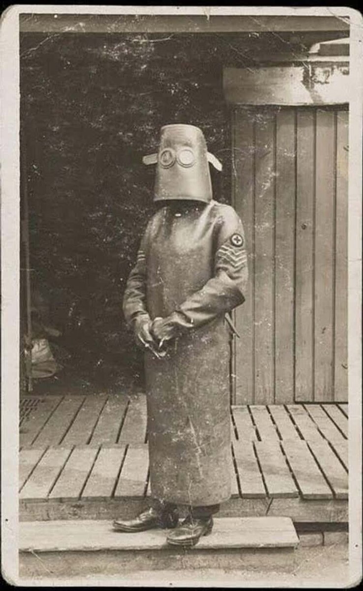 Медсестра-рентгенолог в защитном снаряжении, 1918 год