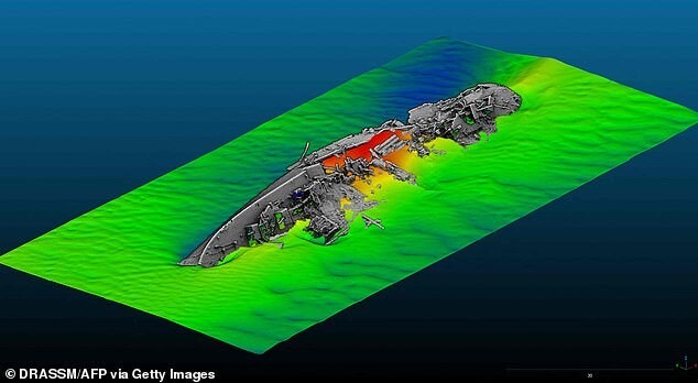 Теперь, спустя почти девять десятилетий, этот военный корабль времен Второй мировой войны снова можно увидеть: ученые с помощью гидролокатора создали его 3D-модель, лежащую на морском дне.