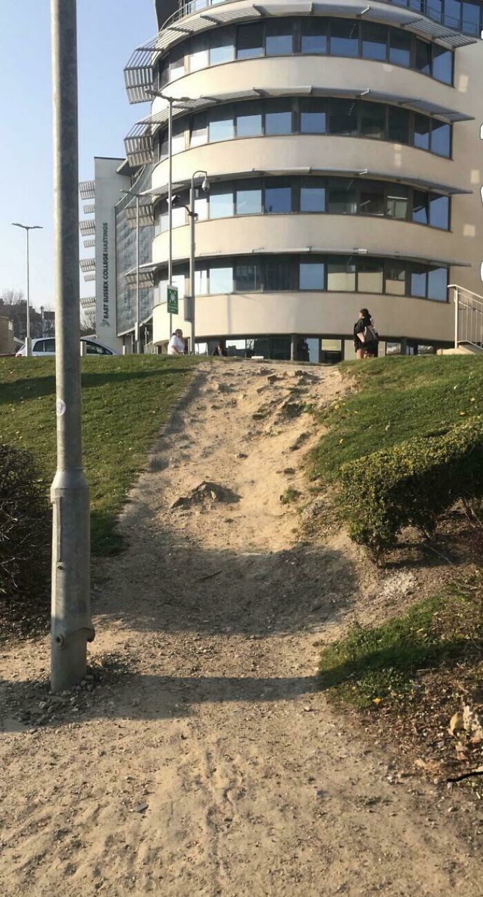 16. "Три года назад я опубликовал фото с этой тропинкой в нашем кампусе. Ура, нас услышали - и делают дорожку"