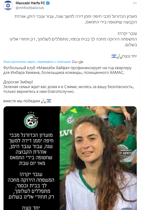 Между тем, узнав, что девушка и её бойфренд - фанаты местного футбольного клуба, ФК «Маккаби» предложил оплатить аренду жилья за год.
