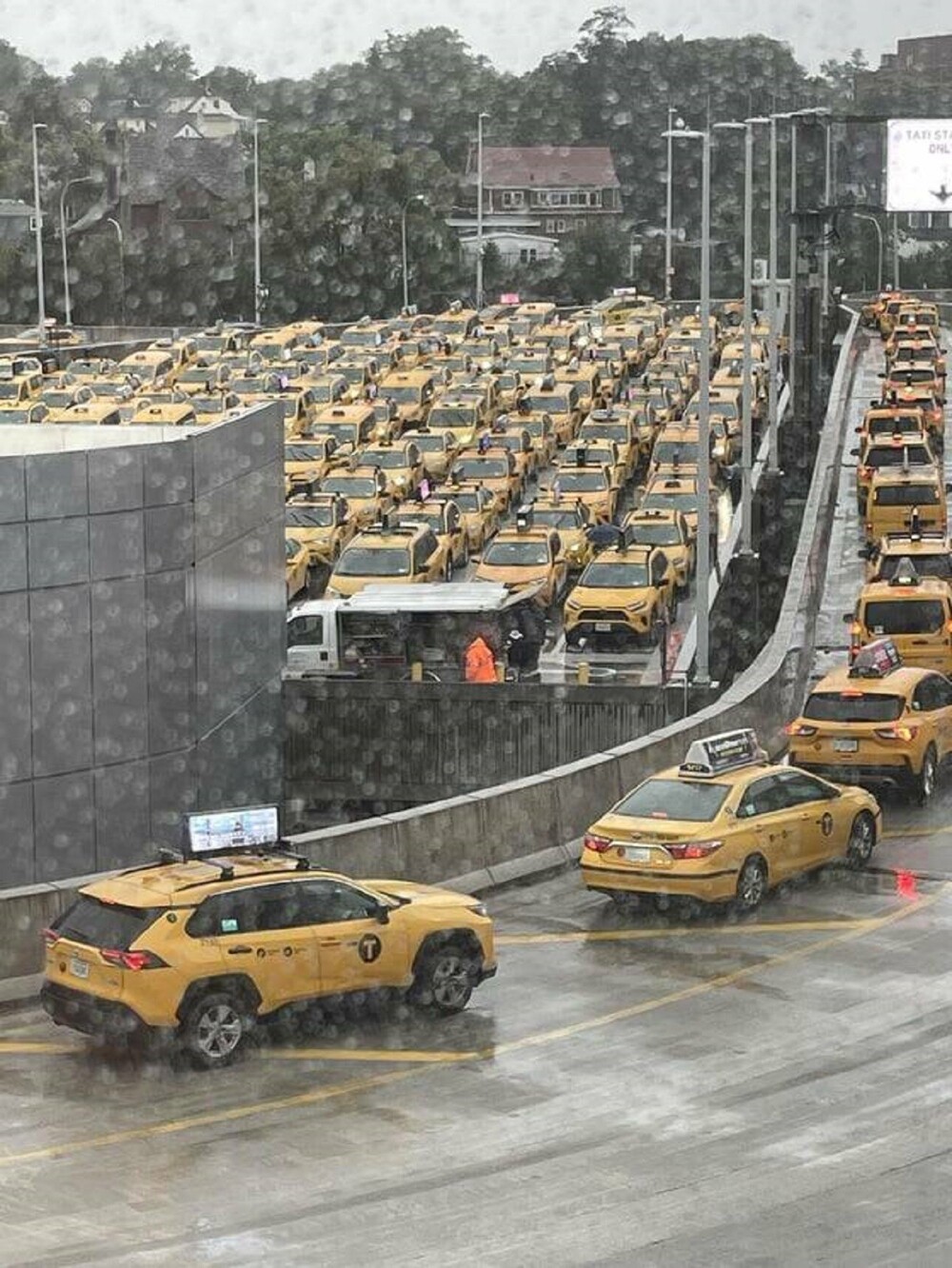 Такси выстраиваются в очередь за пассажирами у аэропорта Ла-Гуардия.