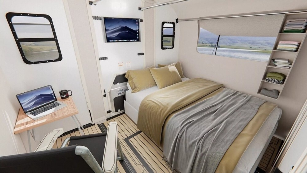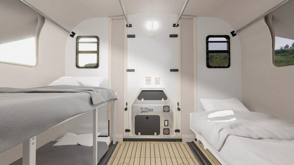 В его оснащение входят резервуары для воды, компактная кухня и спальные места для четырех человек.