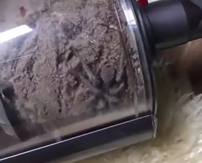 Проведя пылесосом за подушками, женщина проверила, что попало в контейнер, и заметила огромного паука.