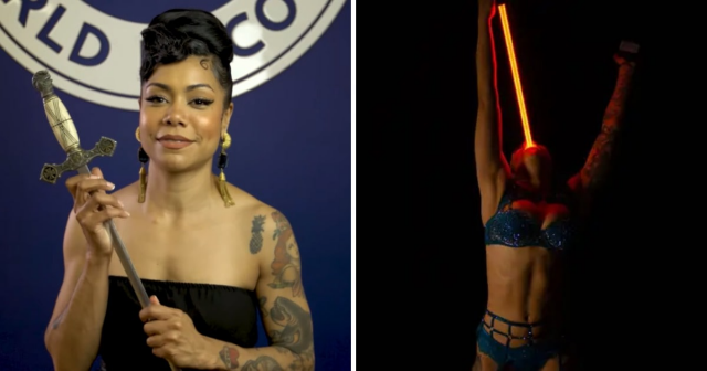 Хизер Холлидей из США проглотила самую длинную неоновую трубку (54,40 см). Но она работает и с более опасными предметами.