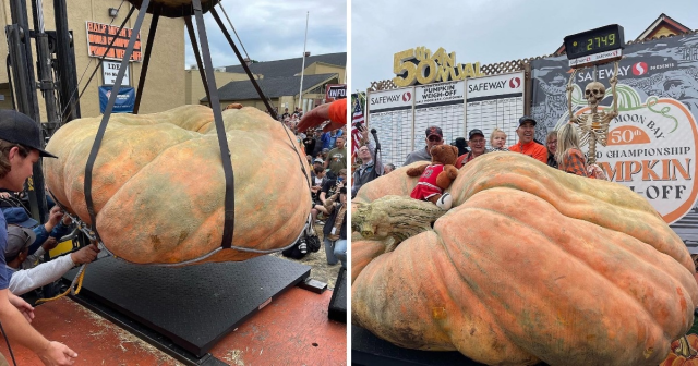 Эта тыква из США, которая весит 1246,9 кг! Из неё можно испечь 1600 тыквенных пирогов.