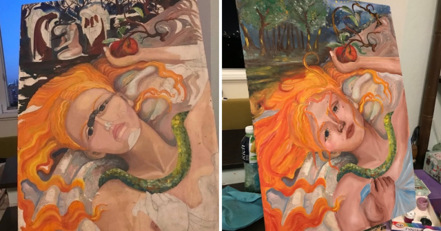 Девушка принесла с помойки картину и решила её чуточку продолжить
