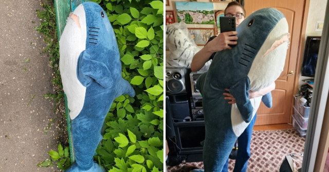 Живодеры! Выбросили эту милейшкую акулу. Кстати, рост парня 185 см. Так что размер игрушки впечатляет