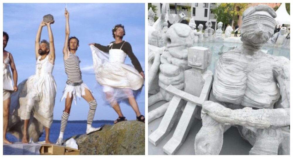 Авторами скульптурной композиции выступила некая арт-группа Gelatin (опять же, странные мужики, которые разрешают фотографировать их только в юбках) и ещё 15 их помощников.