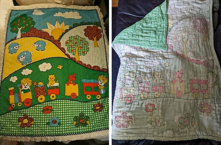 16. Мое детское одеяло, когда оно было новым, и через двадцать лет