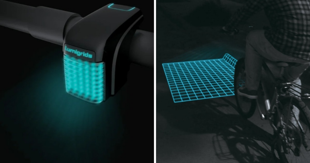 Лазерная фара для определения высоты и глубины местности, по которой вы едете. Фару можно закрепить на руле велосипеда. Её питание осуществляется от внутренней батареи, либо от вращения колёс.