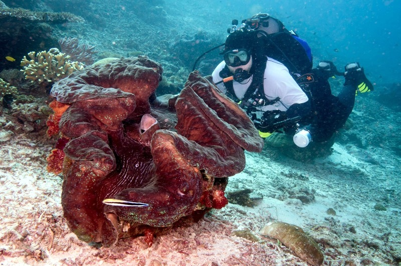 Что же это за драчливые морские коробки такие? Моллюски. А точнее — гигантская тридакна. Или как ещё её называют профессиональные ныряльщики — моллюск-убийца.
