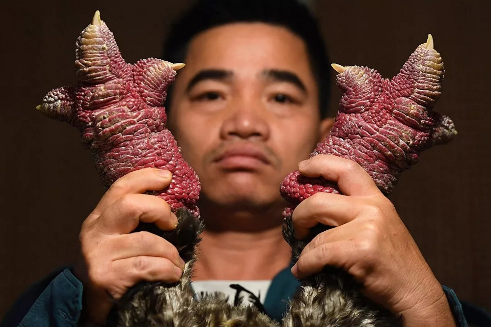На самом деле интерес у азиатов более чем прозаичный. Жесткое мясо пернатых и вот эти огромные драконьи лапищи во Вьетнаме считаются особенным деликатесом. Его преподносят как дорогой подарок — особенно во время китайского Нового года. Примерно с 1600-х годов слоновых кур подавали к столу членам королевской семьи и высокопоставленным лицам в стране. Блюда из этих пернатых всегда были предметом роскоши, однако сегодня никто точно не знает, как вообще появились драконьи цыплятки. Согласно предположениям, мутация ножного гигантизма однажды возникла сама по себе, после чего фермеры из деревни Донг То просто селекционировали птиц по новому признаку.