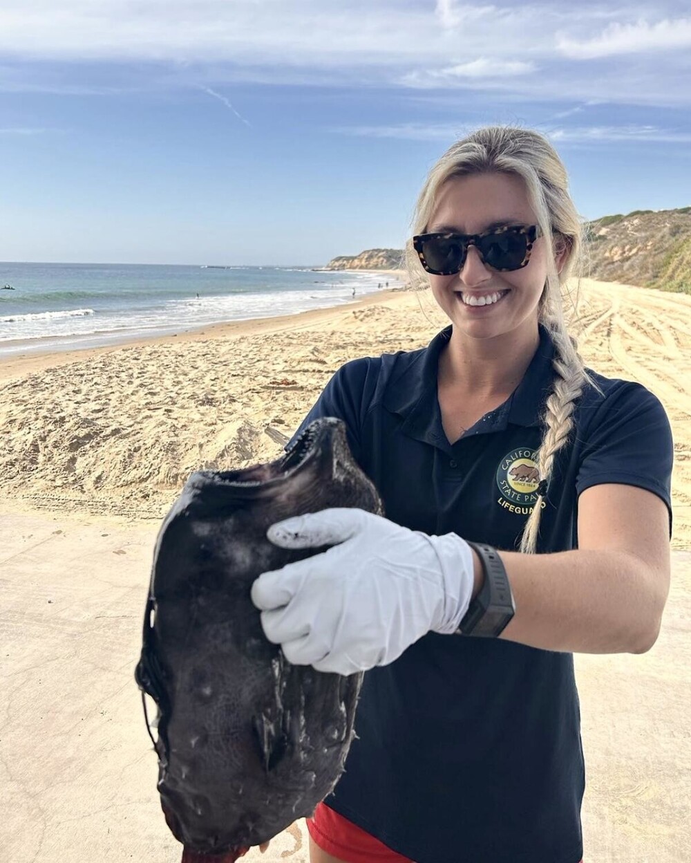 Редкую тихоокеанскую футбольную рыбу выбросило на пляж Калифорнии (4 фото + 1 видео)