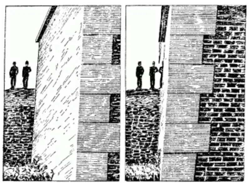 Боковой мираж. Серая неровная стена крепости в боковом мираже стала словно полированной, прозрачной