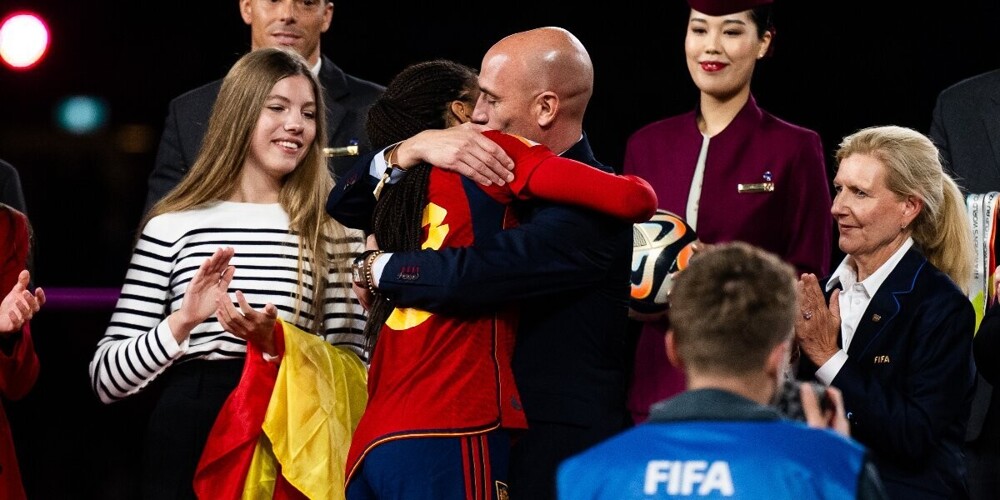 ФИФА отстранила главу испанской футбольной федерации за то, что он поцеловал спортсменку (3 фото + 1 видео)