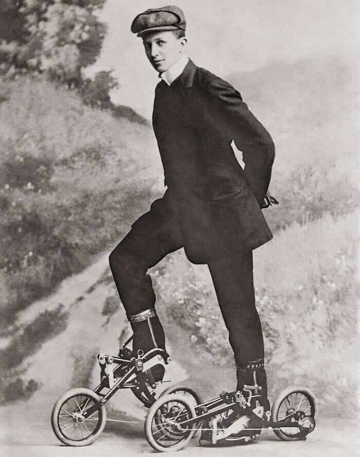 18. Британская суфражистка на автопеде (предшественнике современного электросамоката), 1916 год