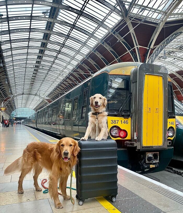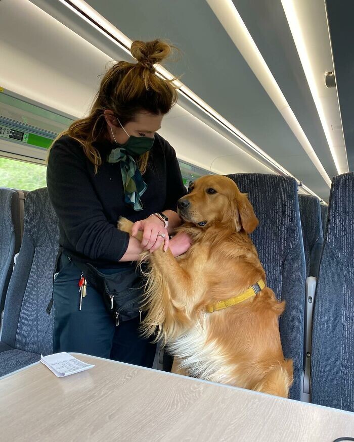 Очаровательный золотистый ретривер всегда находит новых друзей в поезде (18 фото + 1 видео)