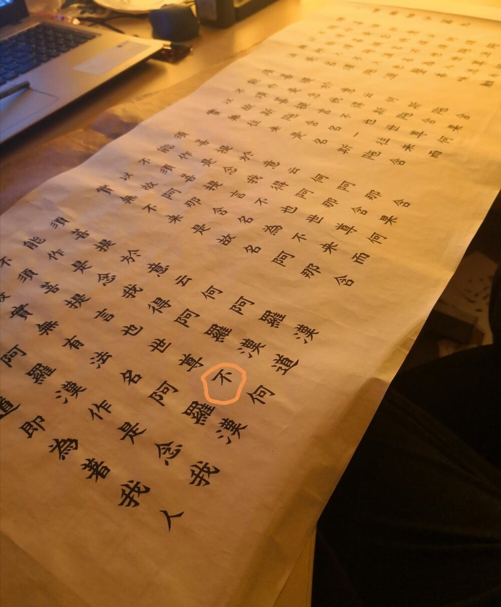 5. Я занимаюсь каллиграфией. Я не туда поместил символ, обведенный кружком, а это часть свитка из 300 слов. Я работал пять дней!