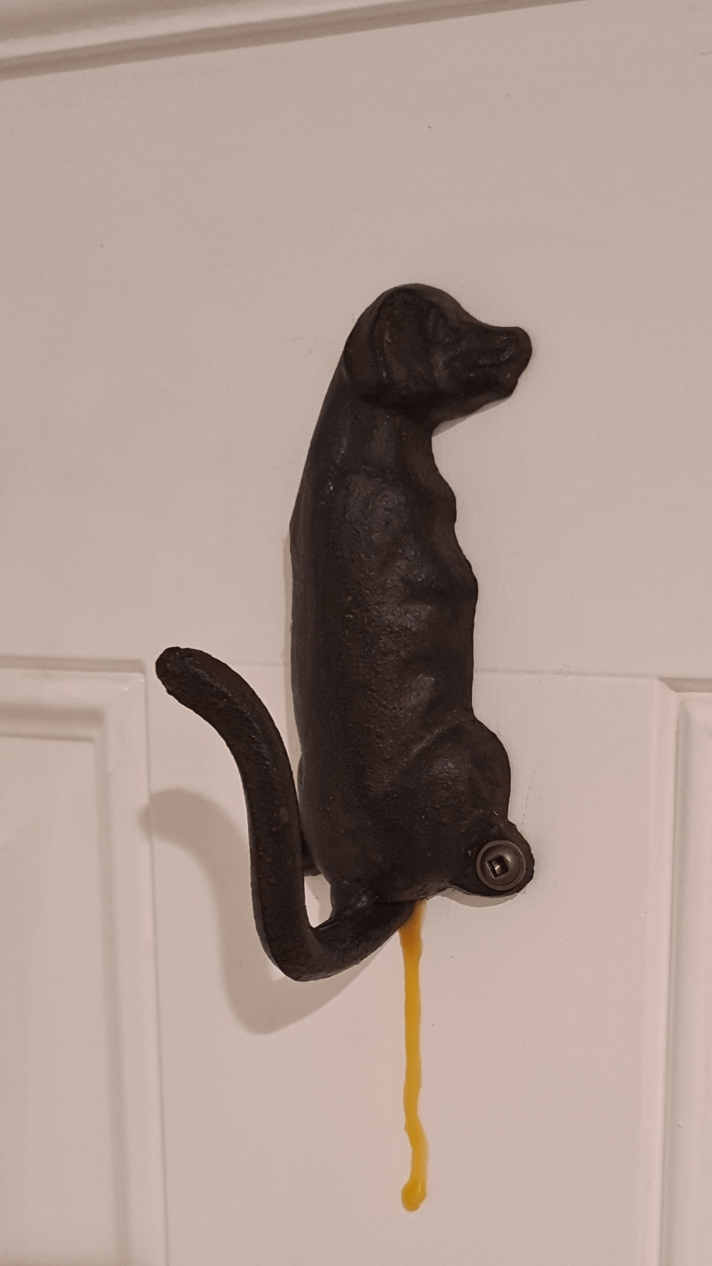 12. Использовал слишком много клея для дерева, чтобы прикрепить крючок к двери. Высох он именно так