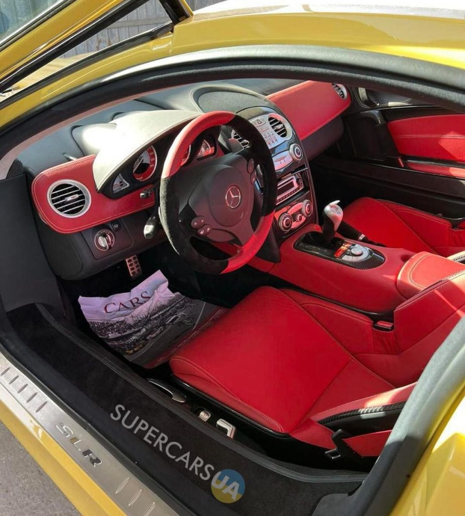 Суперкар Mercedes отличается эксклюзивными цветами и внутренней отделкой. С технической точки зрения это Mercedes SLR McLaren 722 Edition, который когда-то был на тесте ТопЖира.