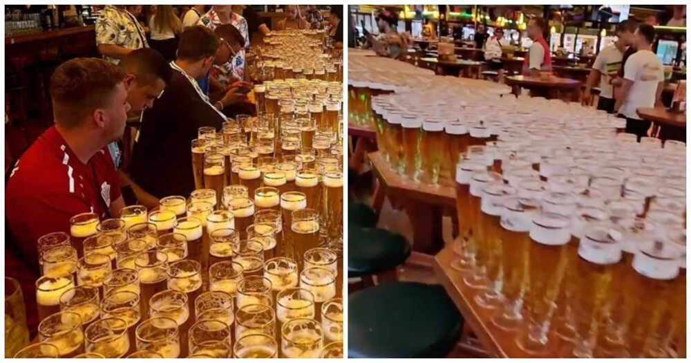 За три часа они выпили более 600 литров пива, а если быть точнее, то 1254 стаканов. Группа, возглавляемая 62-летним немецким бизнесменом Каем Уве Кахманном, никогда до этого не встречалась и лично они друг друга не знали. А собрались они для того, что бы побить предыдущий рекорд, установленный там же другими немцами. Те же любители пенного выпили за 3 часа 1111 стаканов пива.