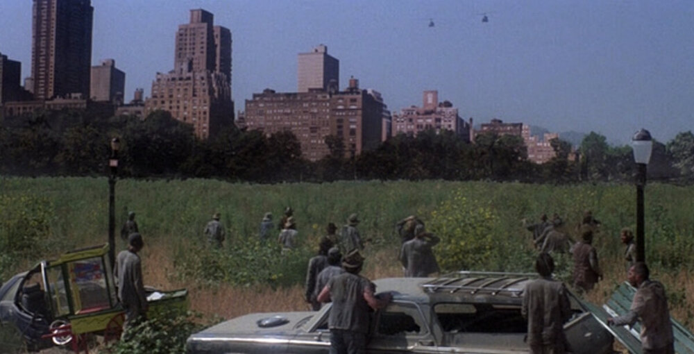 10. Одним из специалистов по спецэффектам был Джеймс Кэмерон. Именно он накладывал маски недостающих ландшафтов во многих сценах. Например в сцене пролёта вертолётов над Центральным парком (на самом деле она снималась в Калифорнии).