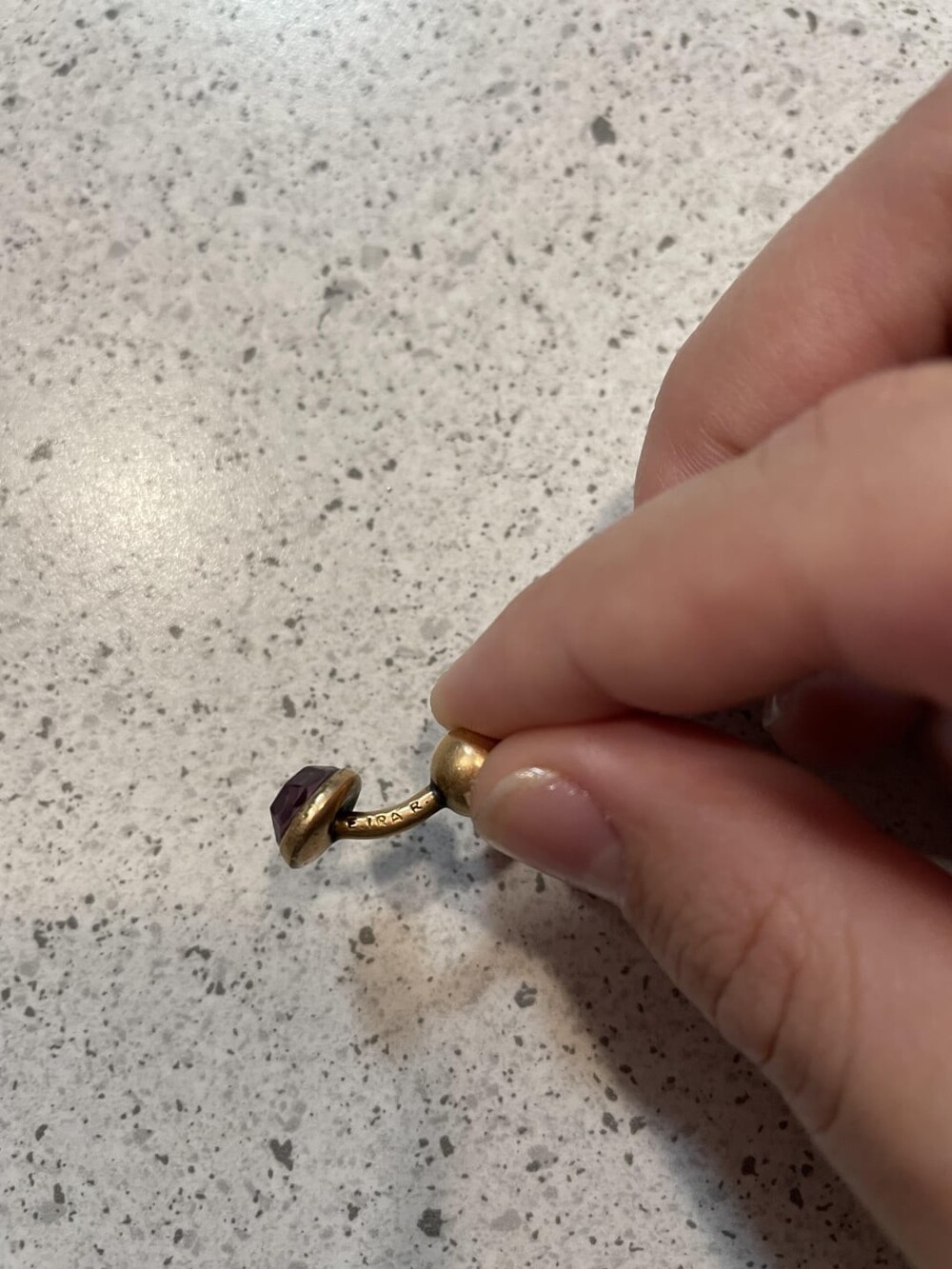 3. Изогнутый металлический предмет с фиолетовым камнем на одном конце и шариком на другом