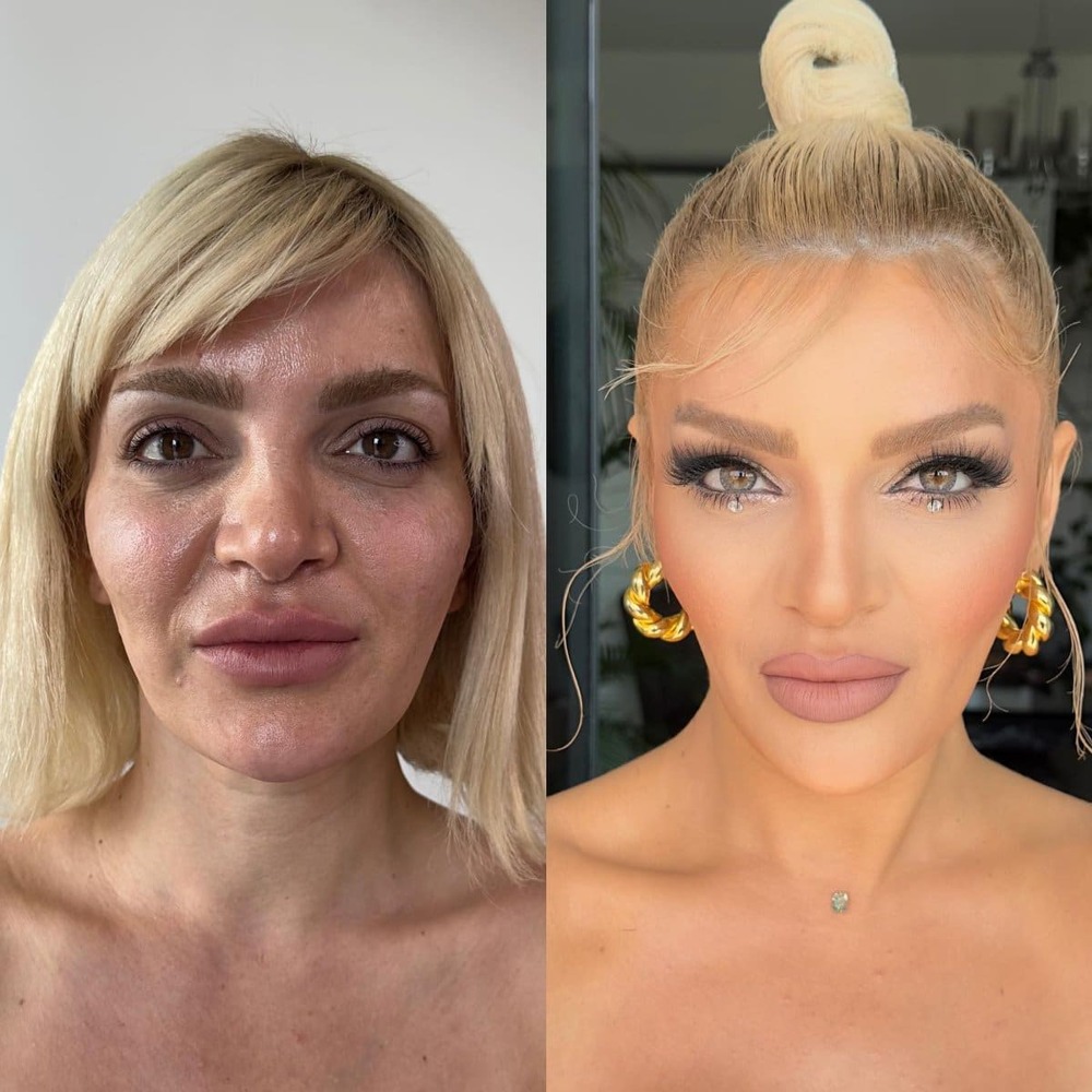 С трудом верится, что подобных перемен можно добиться без пластических операций. Однако Анар никогда не прибегает к травмирующим процедурам при создании образов своим клиенткам.