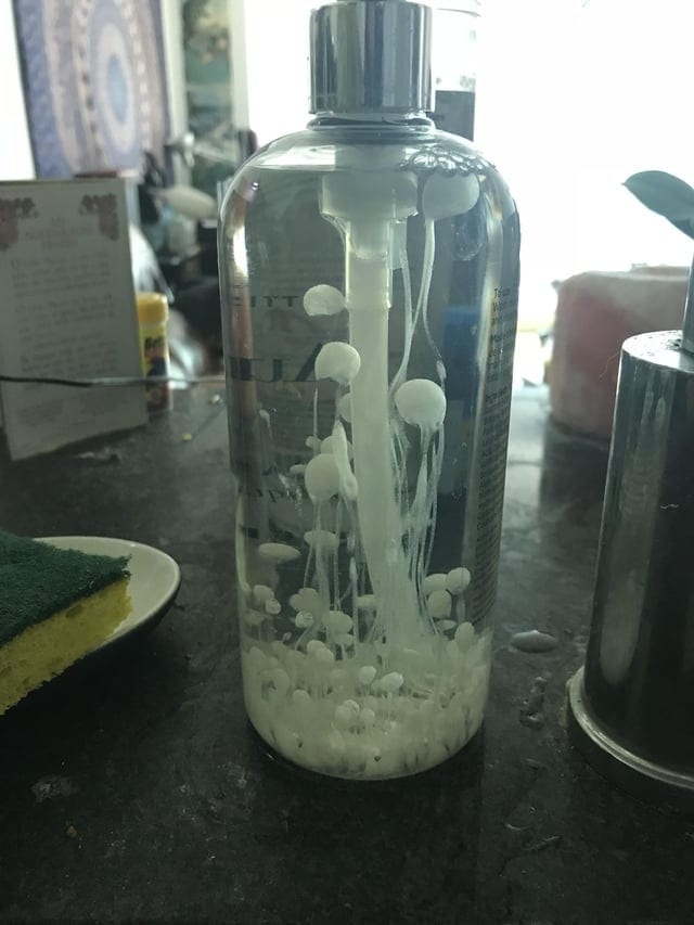 Новое мыло, добавленное в дозатор, создало жутко выглядящую смесь.