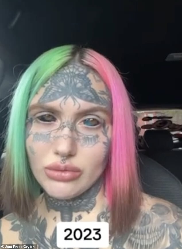 Тату-модель рассказала, что потратила более 50 000 долларов и 10 лет на изменение своего тела. Она постоянно слышит критику в свой адрес. Ей говорят, что раньше она выглядела лучше, но это её ничуть не заботит.