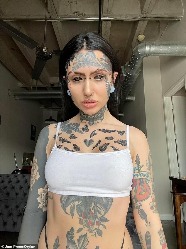 24-летняя жительница Хьюстона (штат Техас) по имени Орилан увлеклась бодимодификацией в 14 лет. Всего за десять лет она сумела изменить свою внешность до неузнаваемости. Теперь Орилан выглядит так инфернально, что ею можно пугать маленьких детей.