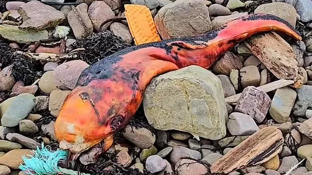 На британском пляже обнаружили странное оранжевое создание (5 фото)
