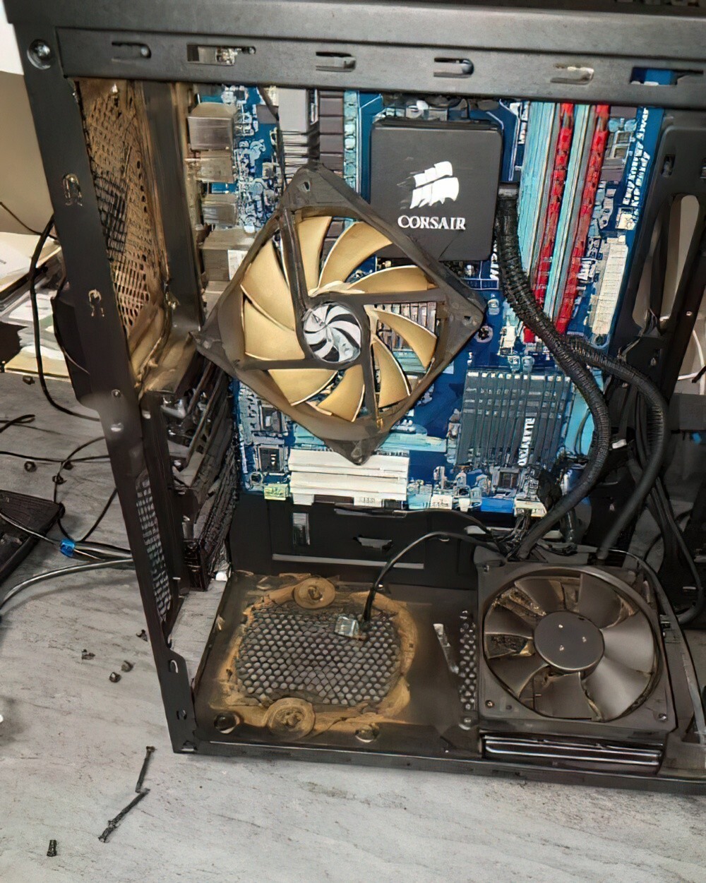 15. «Компьютер курильщика. Вентилятор изначально был белым, и все это покрыто пылью и смолой. Пахнет ужасно»