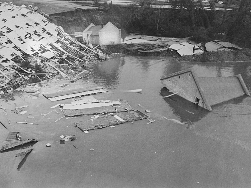 Но вода хлынула в пустую шахту, размывая скважину – на месте аварии возник настоящий огромный водоворот, воронка выросла до 55 метров в диаметре. В эту дыру вместе с водой унесло буровую установку, 11 барж, буксир, док, остров с ботаническим садом, дома и грузовики.