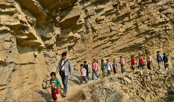 Два раза в год ученикам интерната нужно проходить тяжёлую и долгую дорогу в отвесных скалах. Расстояние в 201 км, пешком, через четыре реки и горы Синь Цзян. Эта дорога очень трудна, опасна, а через реки нужно проходить не только по двухсотметровому цепному мосту, но и по самодельным мостикам из всего одной доски.