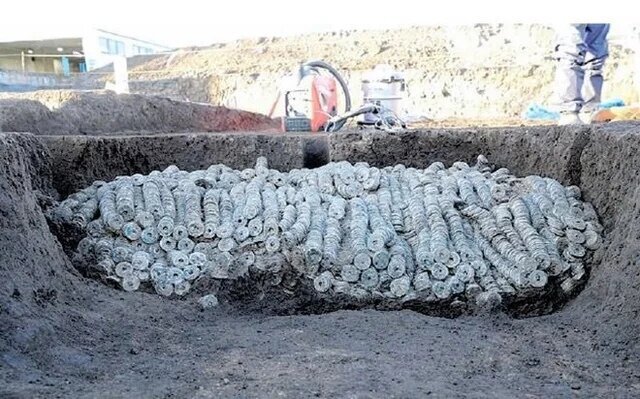 В японской провинции Гунма, в районе Соджамачи, где планировалось построить завод, копали котлован… и нашли клад небывалых размеров: 100 тысяч монет, некоторым из которых более 2000 лет.