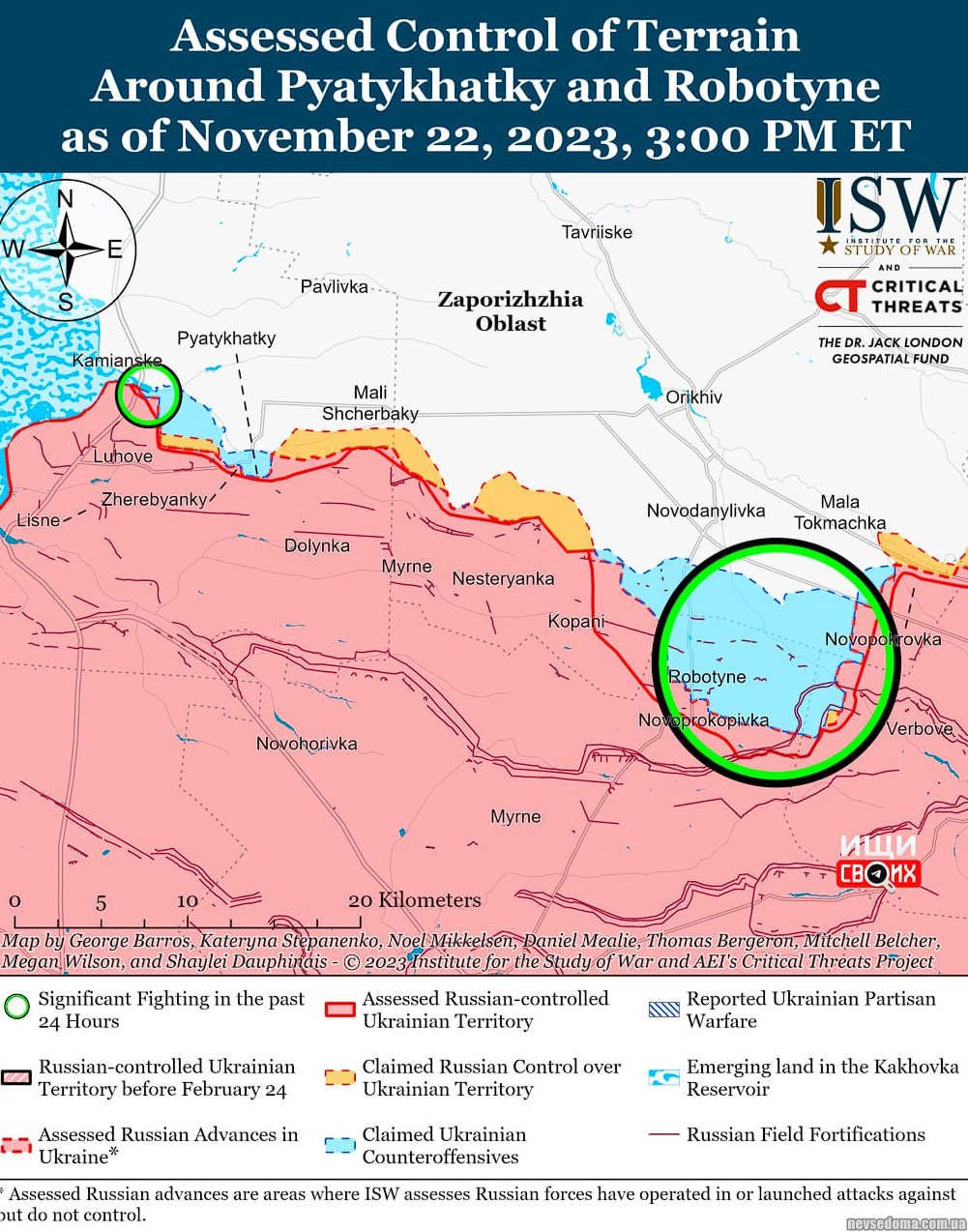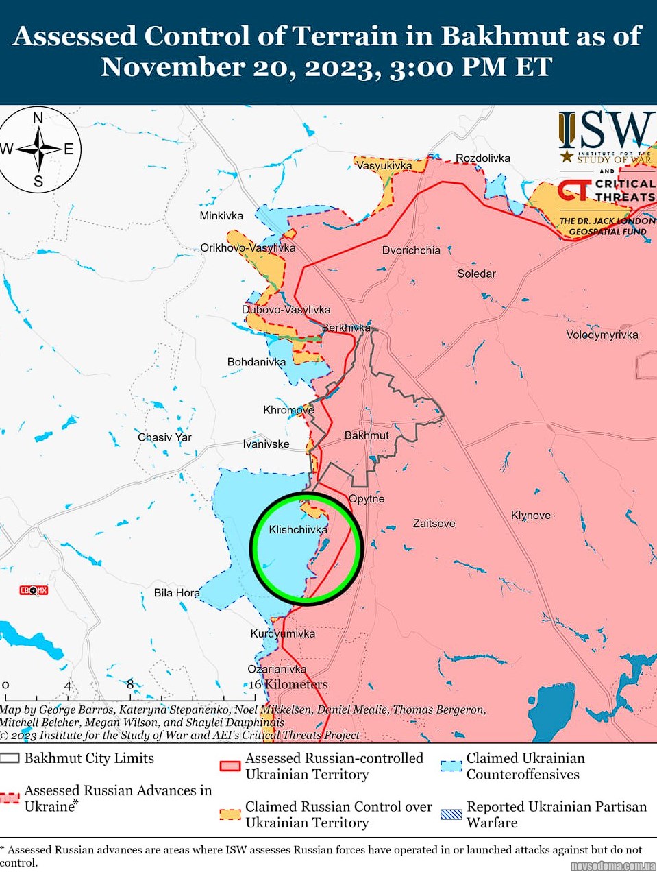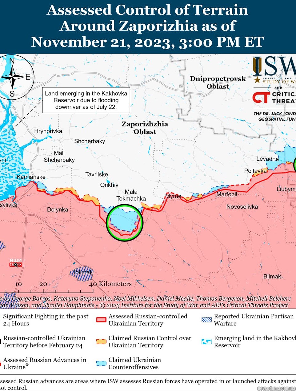 Украинские и российские силы продолжают проводить наступательные операции на востоке и юге Украины, несмотря на дождливую и снежную погоду, - ISW, ситуация на фронте.