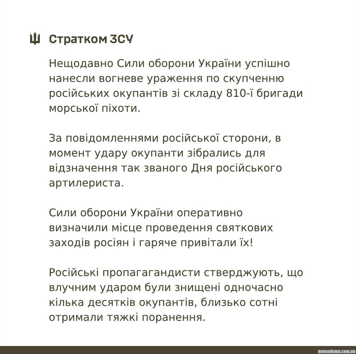 - Стратком подтвердил удар по 810 бригаде морпехов России.