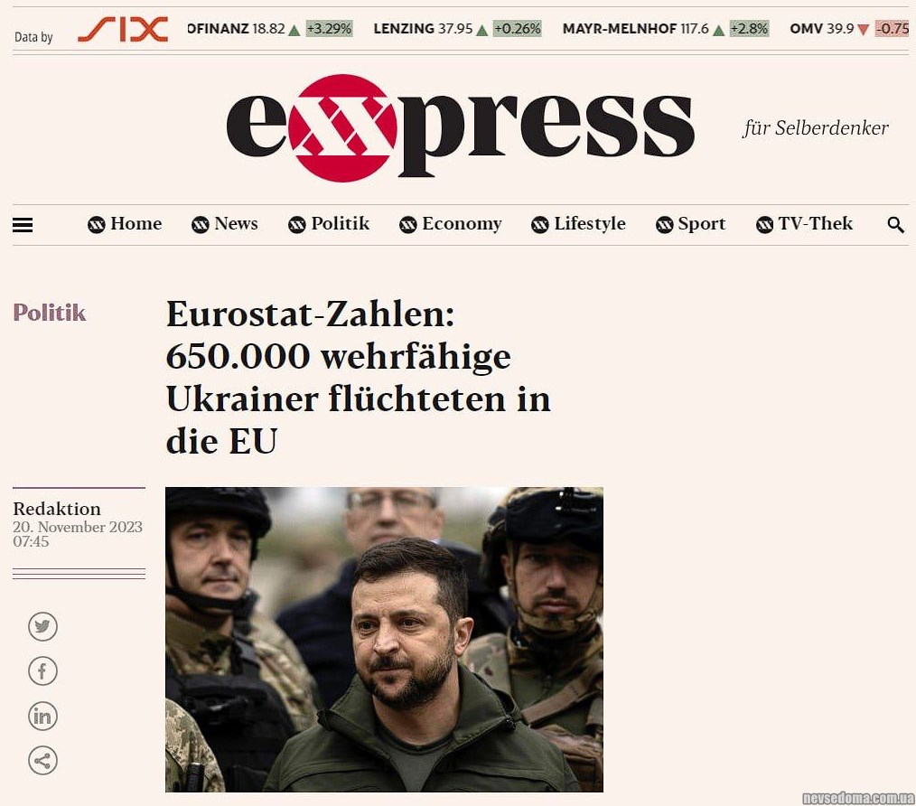 - С начала войны Украину в ЕС покинули 650 тысяч мужчин призывного возраста, пишет "Экспресс" со ссылкой на данные Евростата.