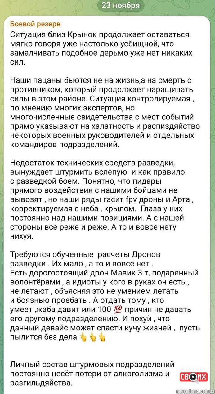 ▪️ВСУ продвинулись на левом берегу Херсонской области и продолжают удерживать позиции в Крынках и возле Антоновского автомобильного моста.