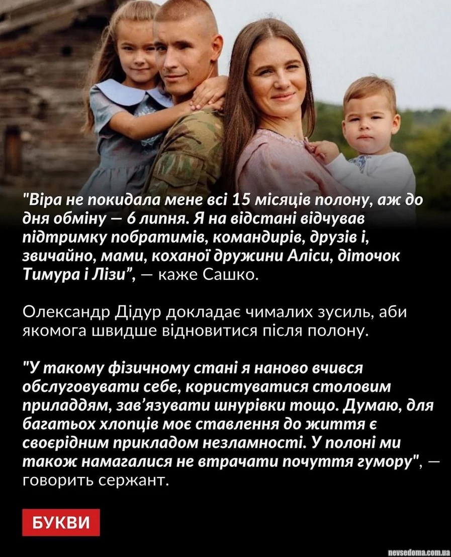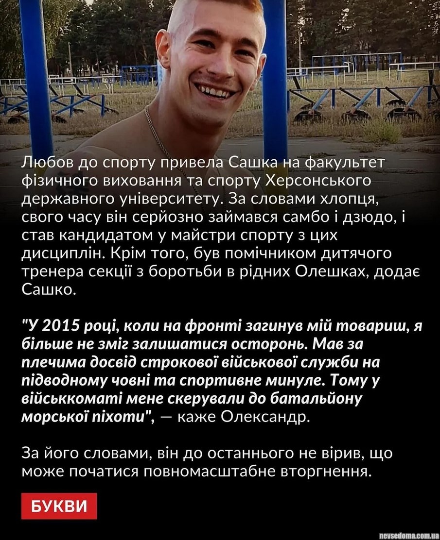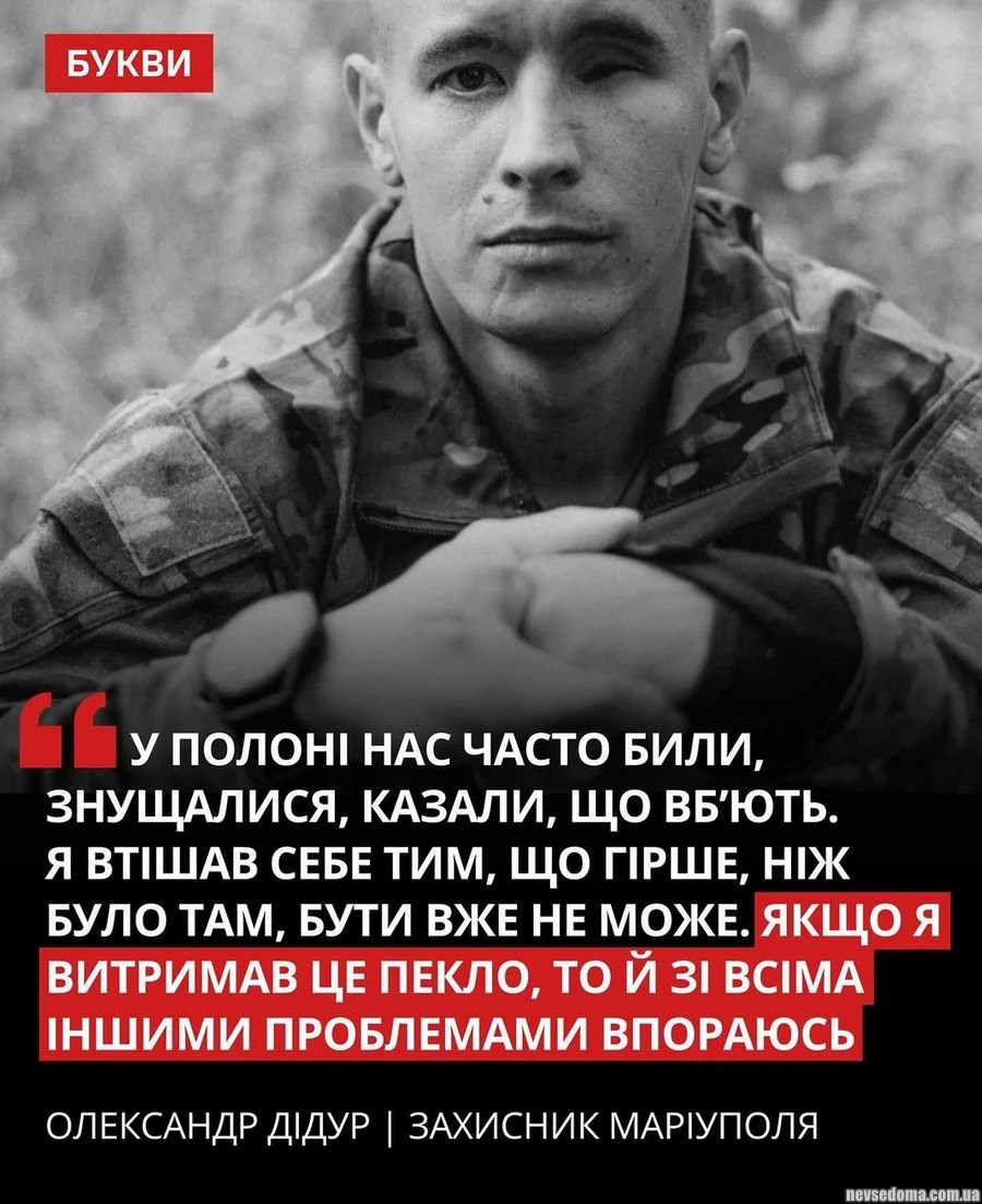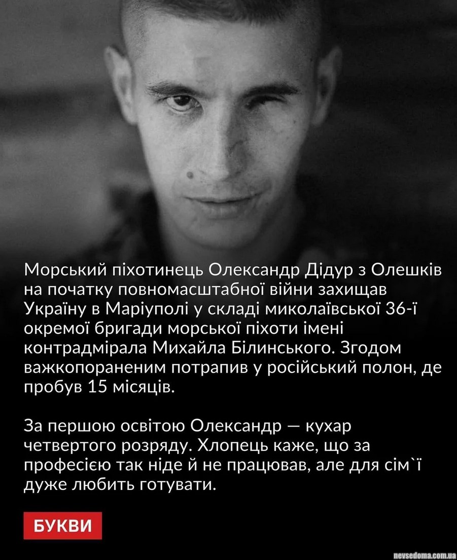 - Украинский морпех Александр Дидур с началом войны защищал Мариуполь. Позже, тяжело раненный, он попал в российский плен и провел в нем 15 месяцев