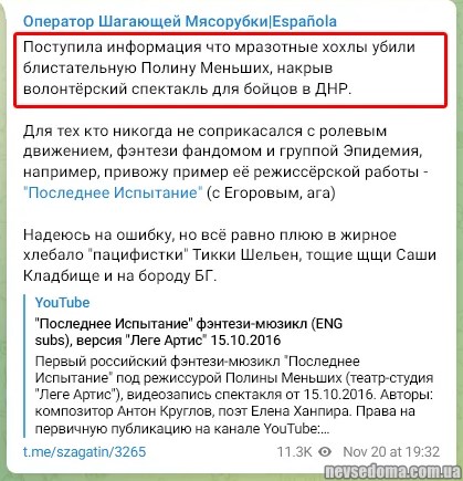 Правда, уже 20 ноября ей позвонили из прокуратуры и пригласили «пообщаться». Силовики расспрашивали про её отношение к боевым действиям в Украине.