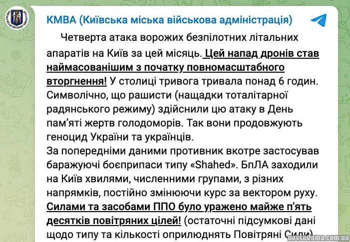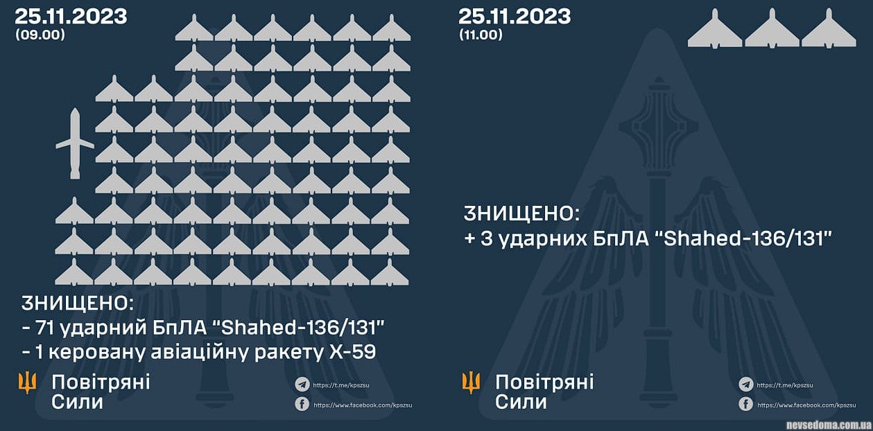 В годовщину Голодомора рф выпустила по Украине рекордное количество дронов – 75 "Шахедов"