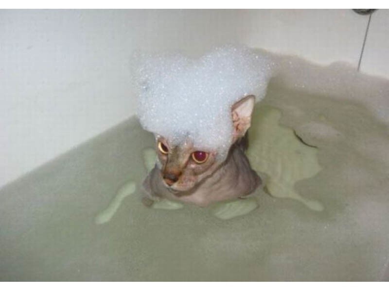 Но среди котеек встречаются экземпляры, которые переносят водные процедуры вполне себе благосклонно и даже не прочь расслабиться, подрейфовав на спокойной глади. Видимо, что-то в этой мокрой и гадкой водице всё же есть.