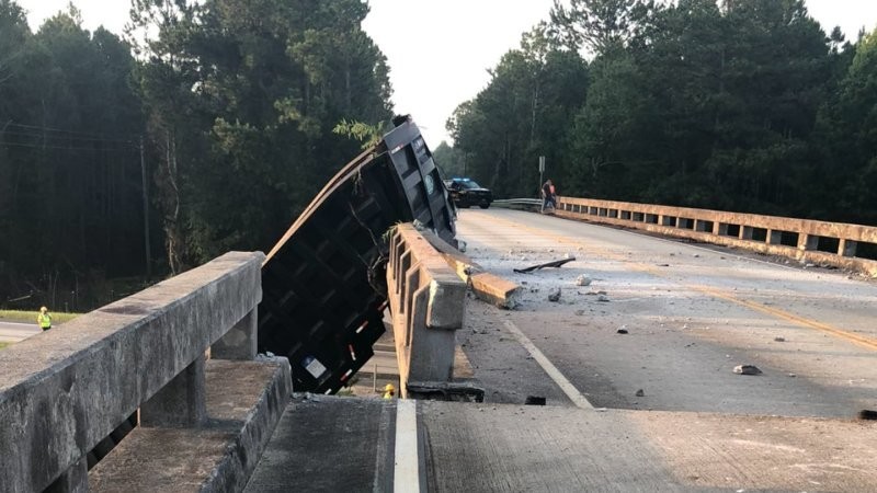 9. В штате Джорджия, США, тягач с самосвальным полуприцепом врезался в эстакаду и сдвинул её почти на 2 метра