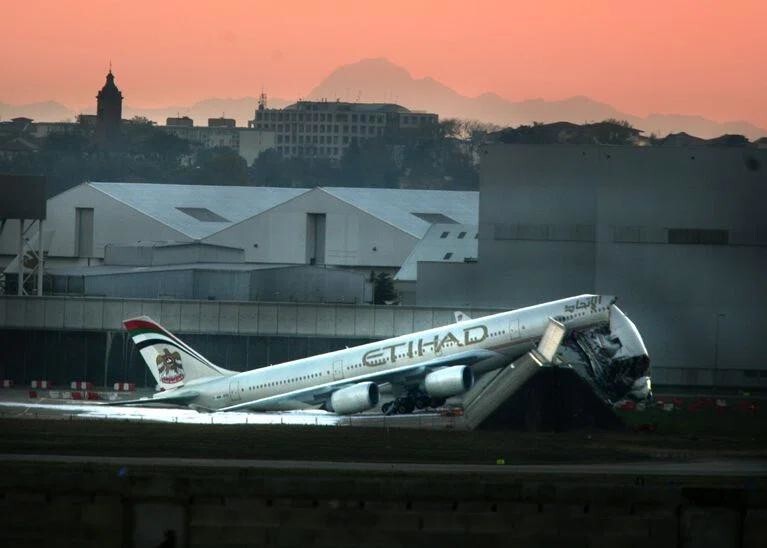 23. Пилоты и механики Abu Dhabi Aircraft Technologies (ADAT) во время наземных испытаний разбили совершенно новый Airbus A340